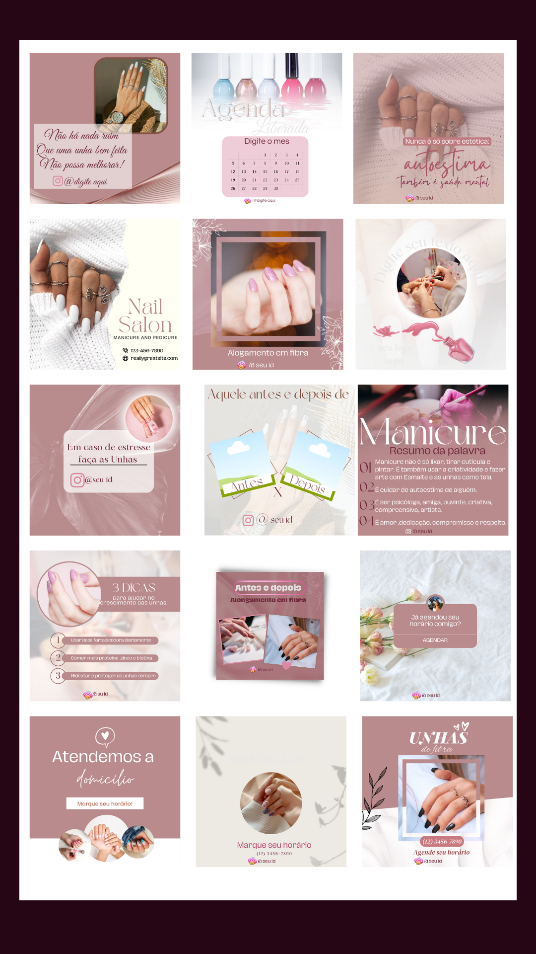 + DE 100 Modelos de Posts Estratégicos para você que é profissional Nail Designer. Agora você não tem mais desculpa para não produzir conteúdo, a maioria dos templates já estão com o conteúdo pronto para você se inspirar.